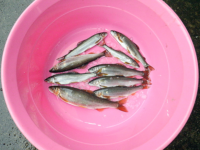 中津川下流:16尾 15〜20p 青梅市 武藤氏の午後〜釣果! ※下記写真↓